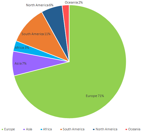 Participants by continents
